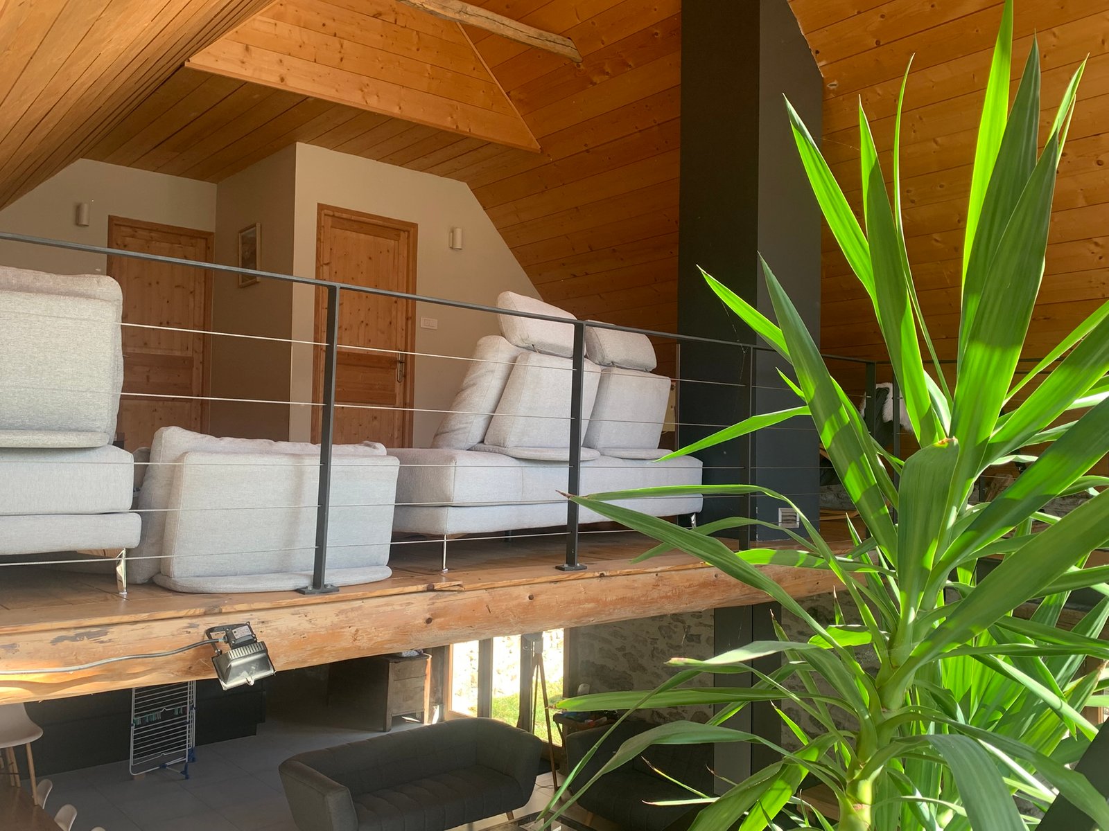 - La mezzanine / salon télé, avec baby-foot et jeux de société.