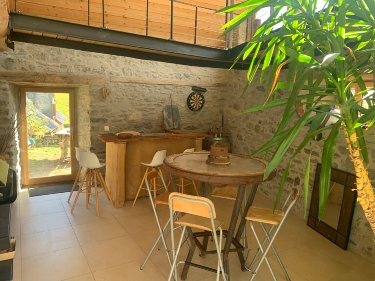 La décoration contemporaine mêle élégance, simplicité et authenticité. Les matériaux nobles tels que le bois, l’ardoise et la pierre s’harmonisent pour créer une ambiance chaleureuse et raffinée, respectueuse de l’histoire du site. Chaque détail est pensé pour vous offrir un confort optimal et un sentiment d’évasion. La lumière naturelle inonde les pièces, soulignant les volumes généreux et la beauté des matériaux. Un véritable havre de paix où vous pourrez vous ressourcer et profiter de chaque instant.